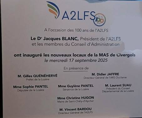 Jacques Blanc, qui est Président de l'A2LFS, comme du Clos du Nid, Laurent Suau, président du conseil départemental, Guylène Pantel, sénatrice de